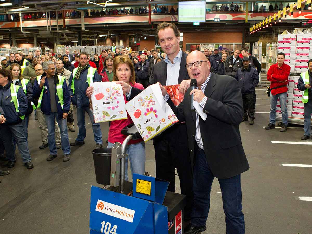 Naaldwijk is de eerste vestiging van FloraHolland die gaat werken met Voice. Deze primeur werd feestelijk gevierd met als gastheer BN’er Gaston Starreveld, dé voice van Nederland. Timo Huges, algemeen directeur van FloraHolland, bestuurde een elektrotrekker en liet zich met Voice instrueren bij het ophalen van drie symbolische voorwerpen, waaronder een ‘Voice-gecertificeerd’ T-shirt, een terminal en een headset. Timo Huges overhandigde de voorwerpen uiteindelijk aan één van de medewerkers die over is gegaan op Voice. De ‘voice’ was in dit geval Gaston Starreveld.