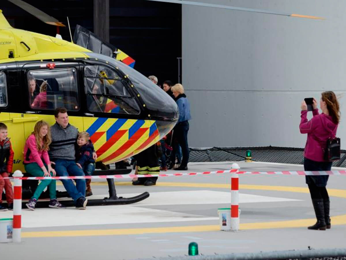Tijdens de Open Dag konden belangstellenden een bezoek brengen aan het helikopterplatform waar de traumahelikopter van binnen te bekijken was.
